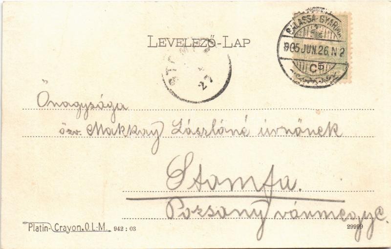 Leírás: 1905 Balassagyarmat, B-Gyarmat; M. kir. állami elemi népiskola. Darvai Armin kiadása (r)