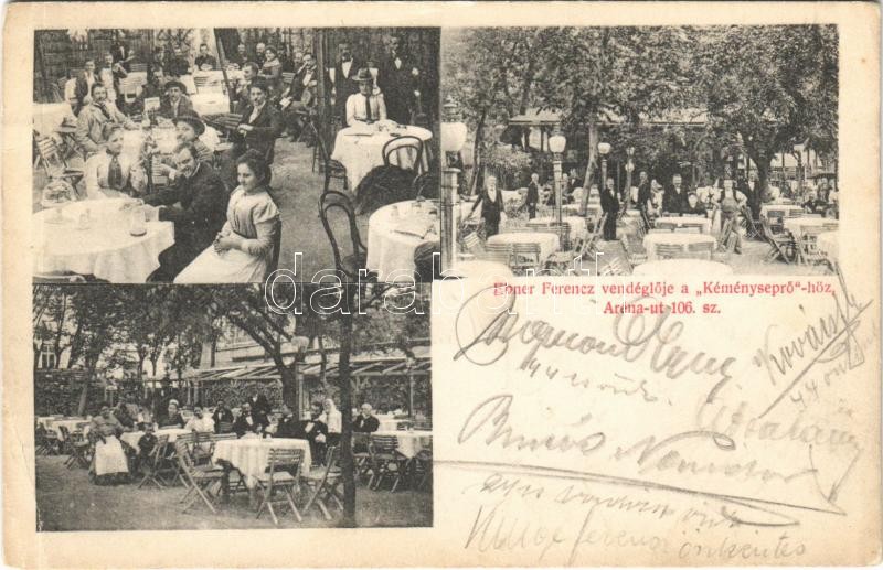 1906 Budapest VI. Ebner Ferenc Vendéglője a Kéményseprőhöz, étterem ke... https://www.darabanth.com/hu/35-Nagyaukcio/35.1/Kepeslapok/Magyarorszag~14666/1906-Budapest-VI-Ebner-Ferenc-Vendegloje-a-Kemenyseprohoz-etterem-kertje-pincerek-Arena~II2362769