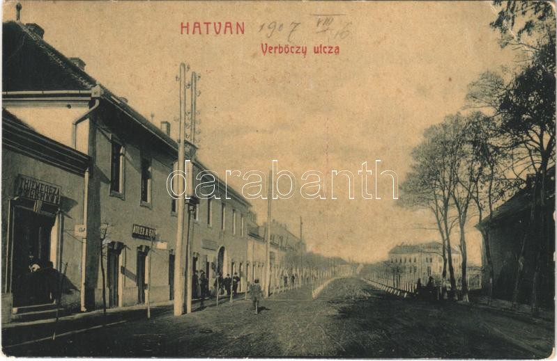 1907 Hatvan, Verbőczy utca,Thieme Géza cukrász és Adler A. fia üzlete.... https://www.darabanth.com/hu/35-Nagyaukcio/35.1/Kepeslapok/Magyarorszag~14666/1907-Hatvan-Verboczy-utca-Thieme-Geza-cukrasz-es-Adler-A-fia-uzlete-WL-No-931-EK~II2363074