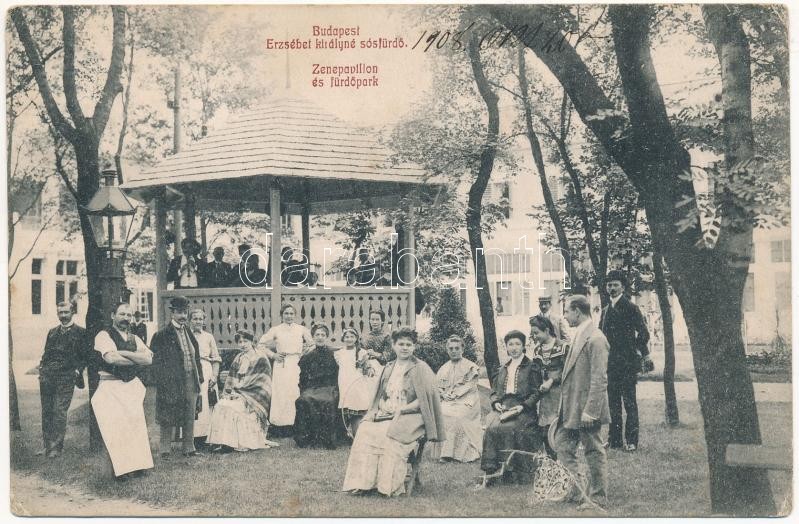 1908 Budapest XI. Kelenföld, Mattoni-féle Erzsébet királyné sósfürdő, ... https://www.darabanth.com/hu/35-Nagyaukcio/35.1/Kepeslapok/Magyarorszag~14666/1908-Budapest-XI-Kelenfold-Mattoni-fele-Erzsebet-kiralyne-sosfurdo-zenepavilon-es-furdC5~II2362949