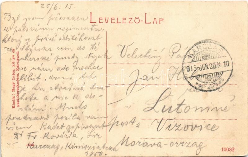 Leírás: 1915 Karcag, Kossuth Lajos tér, Viktória kút, üzlet. Nagy Lajos kiadása. W.L. (?)