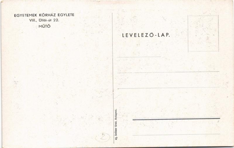 Budapest VIII. Egyetemek Kórház Egylete, belső, műtő. Üllői út 22. https://www.darabanth.com/hu/35-Nagyaukcio/35.1/Kepeslapok/Magyarorszag~14666/Budapest-VIII-Egyetemek-Korhaz-Egylete-belso-muto-Ulloi-ut-22~II2370546