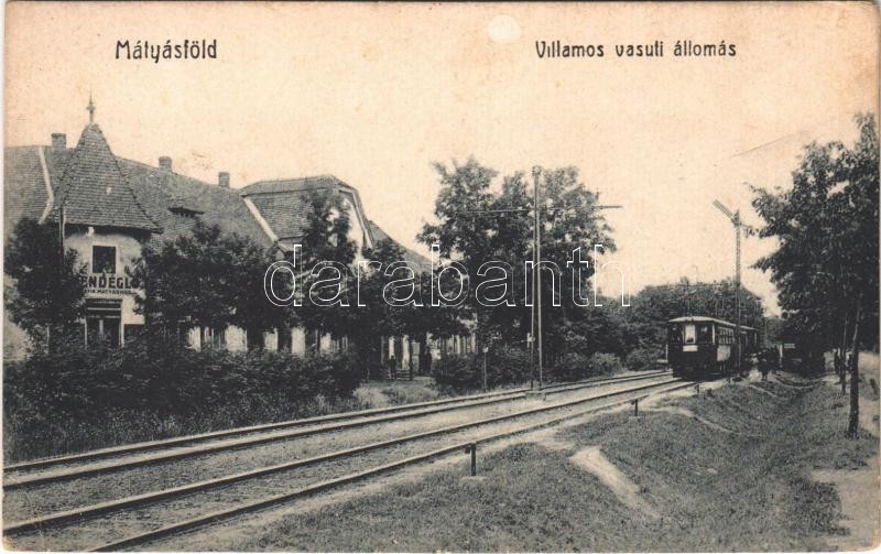 Leírás: Budapest XVI. Mátyásföld, villamos vasúti állomás, vasútállomás, Vendéglő Corvin Mátyáshoz