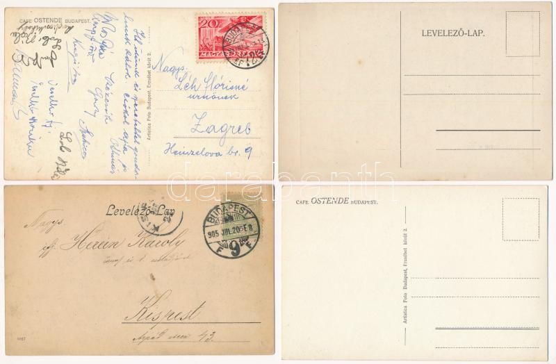 Leírás: Budapest, kávéházak, éttermek, belső - 8 db régi képeslap / 8 pre-1945 postcards