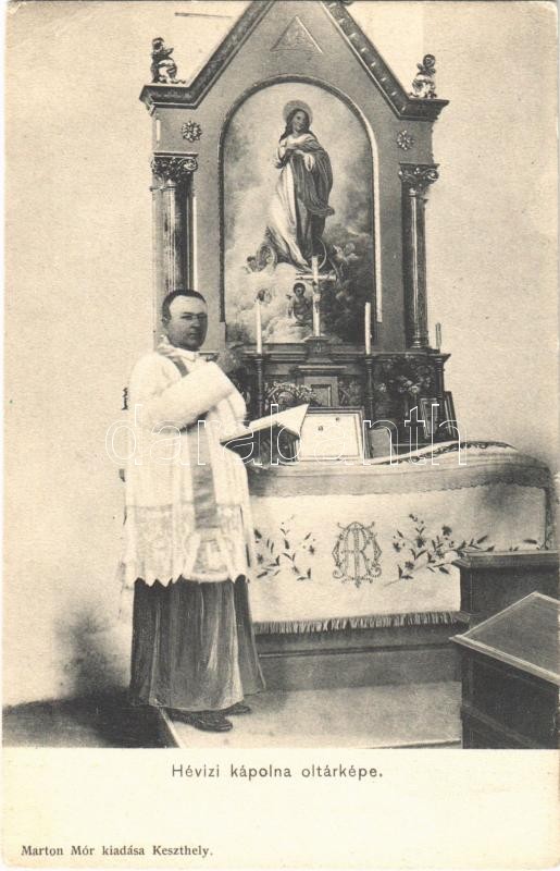 Hévíz, Kápolna oltárképe a pappal, belső. Marton Mór kiadása (EK) https://www.darabanth.com/hu/35-Nagyaukcio/35.1/Kepeslapok/Magyarorszag~14666/Heviz-Kapolna-oltarkepe-a-pappal-belso-Marton-Mor-kiadasa-EK~II2370820