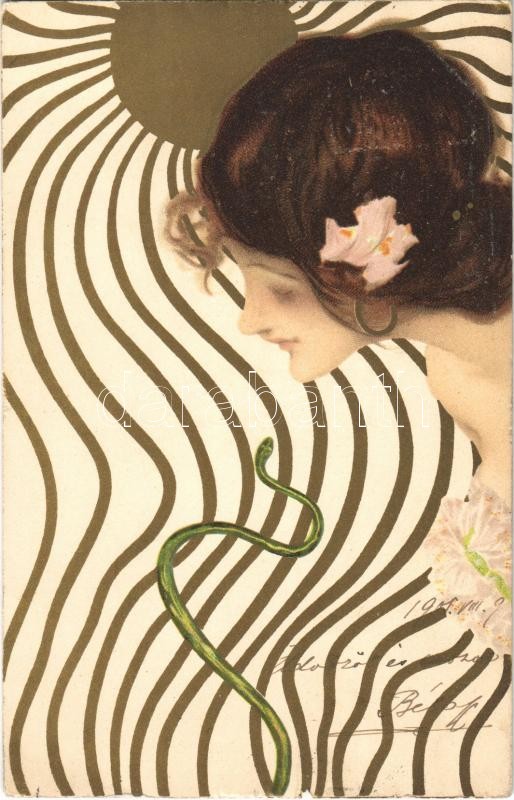1905 Szecessziós arany hölgy / Raphael Kirchner style Art Nouveau gold... https://www.darabanth.com/hu/35-Nagyaukcio/35.1/Kepeslapok/Muveszlapok~14733/1905-Szecesszios-arany-holgy-Raphael-Kirchner-style-Art-Nouveau-golden-lady-litho~II2364551