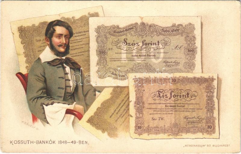 Kossuth-bankók 1848-49-ben. Jelenetek Kossuth Lajos élete történetéből I. kiadás IV. kép / Kossuth bank notes from 1848-49. Scenes from the life of Lajos Kossuth. Athenaeum rt. litho s: K. Sávely D.