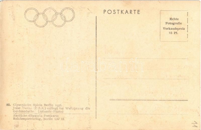1936 Berlin, Olympische Spiele. Jesse Owens (USA) erringt im Weitsprun... https://www.darabanth.com/hu/35-Nagyaukcio/35.1/Kepeslapok/Olimpia~14737/1936-Berlin-Olympische-Spiele-Jesse-Owens-USA-erringt-im-Weitsprung-die-Goldmedaille-Atlantic-P~II2366428