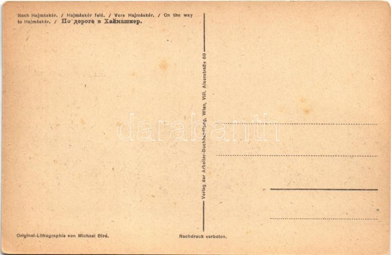 Leírás: Hajmáskér felé! Fehérterror Magyarországon. Verlag der Arbeiter-Buchhandlung / White Terror in Hungary, left-wing propaganda card, Judaica s: Bíró