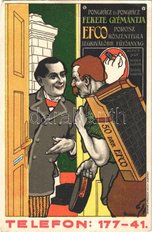 Leírás: EFCO porosz kőszéntégla. Pongrácz és Pongrácz fekete gyémántja. Reklám / Hungarian coal bricks advertisement. Seidner Chromolith. litho s: Földes (EK)