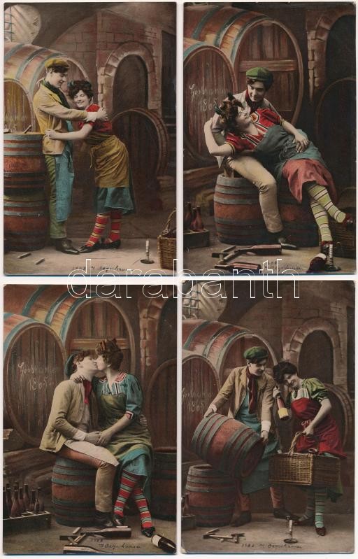 Leírás: 1908 Szerelem a borospincében - 7 db régi képeslap / Love in the wine cellar - 7 postcards