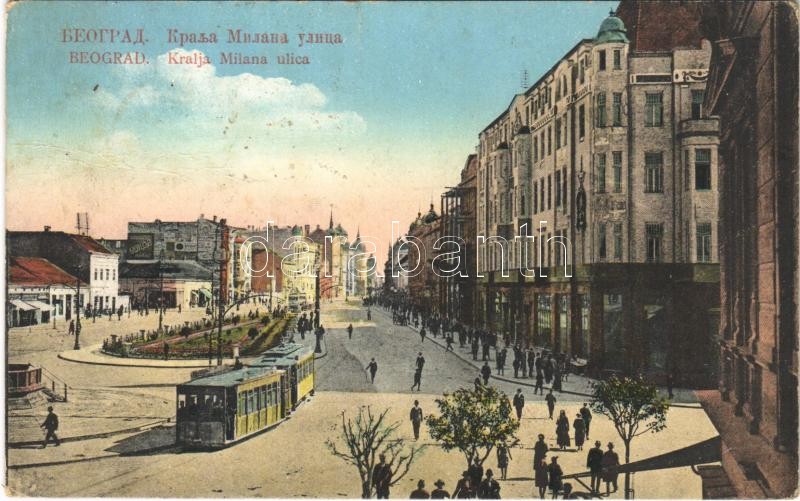 1922 Belgrade, Beograd, Belgrád; Kralja Milana ulica / street view wit... https://www.darabanth.com/hu/35-Nagyaukcio/35.1/Kepeslapok/Szerbia~14761/1922-Belgrade-Beograd-Belgrad-Kralja-Milana-ulica-street-view-with-tram~II2373221