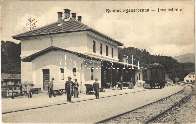 Leírás: 1910 Rogaska Slatina, Rohitsch-Sauerbrunn; Localbahnhof / railway station, wagon