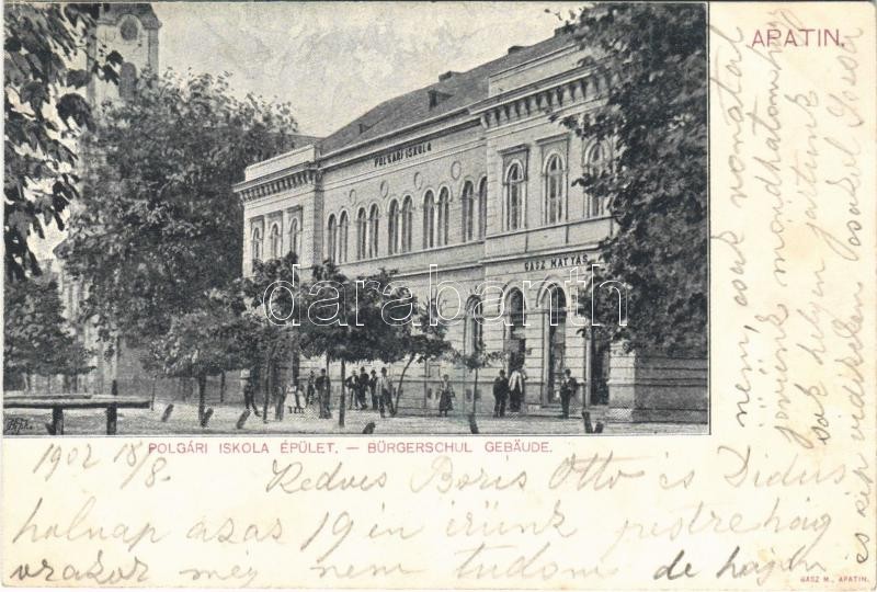 1902 Apatin, polgári iskola, Gasz Mátyás üzlete / schoo, shop https://www.darabanth.com/hu/35-Nagyaukcio/35.1/Kepeslapok/Vajdasag~14671/1902-Apatin-polgari-iskola-Gasz-Matyas-uzlete-schoo-shop~II2370627