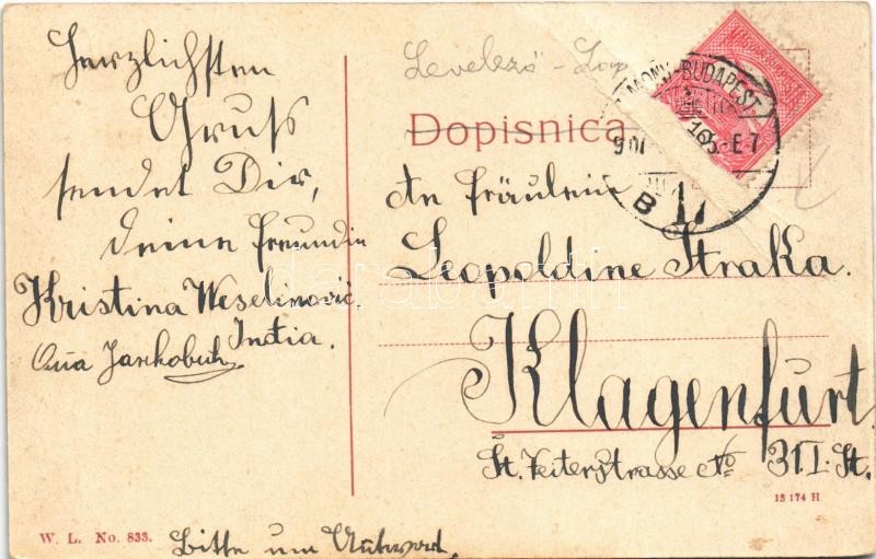 1906 India, Indija; Vasút utca, piac árusokkal, lovaskocsi, templom. W.L. No. 833. / Kolodvor ulica / Bahnhof Gasse / street, market with vendors, church, horse cart (fa)