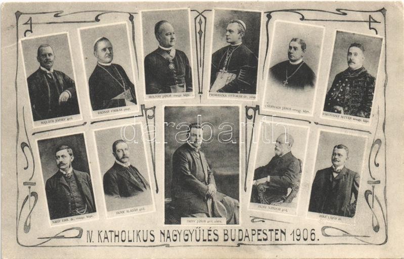 1906 IV. Katholikus Nagygyűlés Budapesten: Zichy János gróf elnök, Prohászka Ottokár dr. püspök, Molnár János orsz. képv., stb. / 4th Catholic Congress in Budapest. Art Nouveau (fl)
