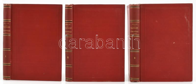 Aszalay József: Szellemi Omnibus kéjutazásra az élet utain. I-III. köt. Pest, 1855-1856, Beim J. és Kozma Vazul-Geibel Ármin, VII+308+1; 4+327+1; 2+364+5 p. Első kiadás. Átkötött egészvászon kötésben, festett lapélekkel, tulajdonosi névbejegyzéssel (Rozsay Ferenc), a borítón és a gerincen kis kopásnyomokkal, ceruzás aláhúzásokkal, néhány foltos lappal, az 1. kötet kötése laza, kissé sérült és az utolsó lapokon szamárfülle.