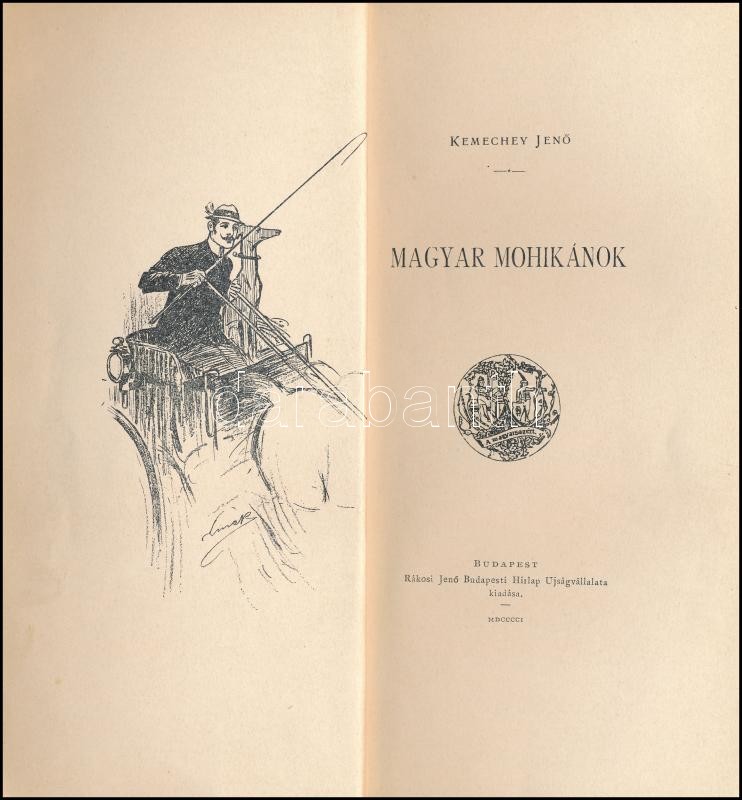 Kemechey Jenő: Magyar Mohikánok. Bp., 1901, Rákosi Jenő, 184+8 p. Egyetlen kiadás. Bibliofil kiadás. Kiadói aranyozott egészbőr-kötés, Leszik-kötés, aranyozott felső lapélekkel, kissé kopott borítóval.