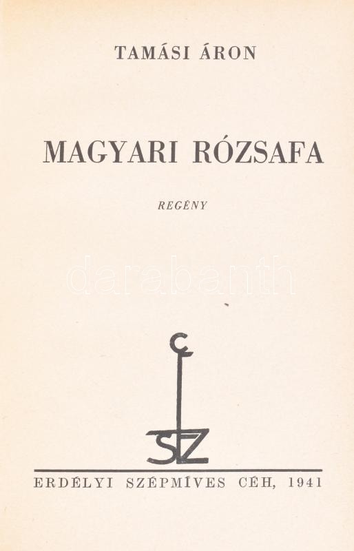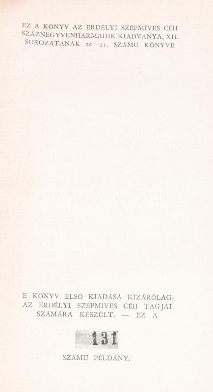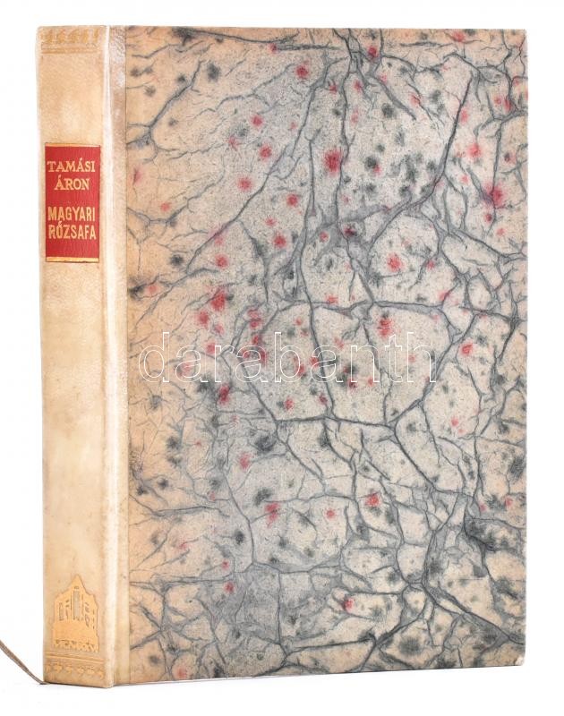Tamási Áron: Magyari rózsafa. Regény. Kolozsvár, 1941, Erdélyi Szépmíves Céh, (Bp., Révai-ny.), 194+2+IV (Erdélyi Szémíves Céh tagjainak névsora) p. Kiadói aranyozott gerincű, félpergamen-kötésben, kis kopásnyomokkal, de alapvetően jó állapotban. Első kiadás, névre szóló, számozott példány: "E könyv első kiadása kizárólag az Erdélyi Szépmíves Céh tagjai számára készült. - Ez a 131. számú példány." Vitéz leveldi Kozma Miklós (1884-1941) politikus, a Gömbös-kormány egykori hadügyminiszterének (1936. május 14.-augusztus 7.) számára készült névre szóló példány, grafikus, tulajdonosi címkével, címke: 10,5x7 cm.
