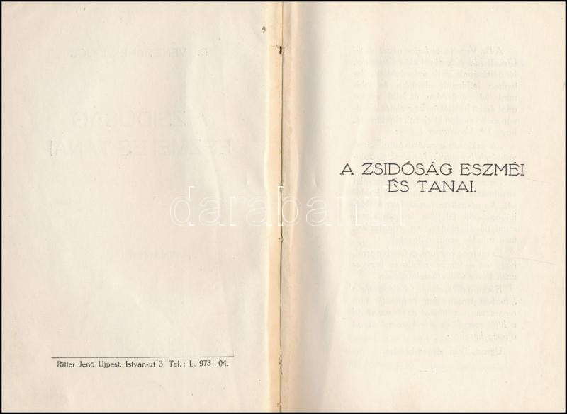 Venetianer Lajos: A zsidóság eszméi és tanai. Ujpest, 1926, Denetianer Lajos Izr. Közművelődési Egyesület, 181+3 p. Harmadik kiadás. Kiadói egészvászon-kötés.