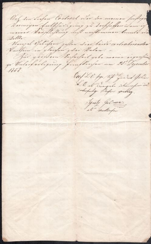 Leírás: 1858 Fünfkirchen (Pécs), német nyelvű szerződés 8 fl okmánybélyeggel