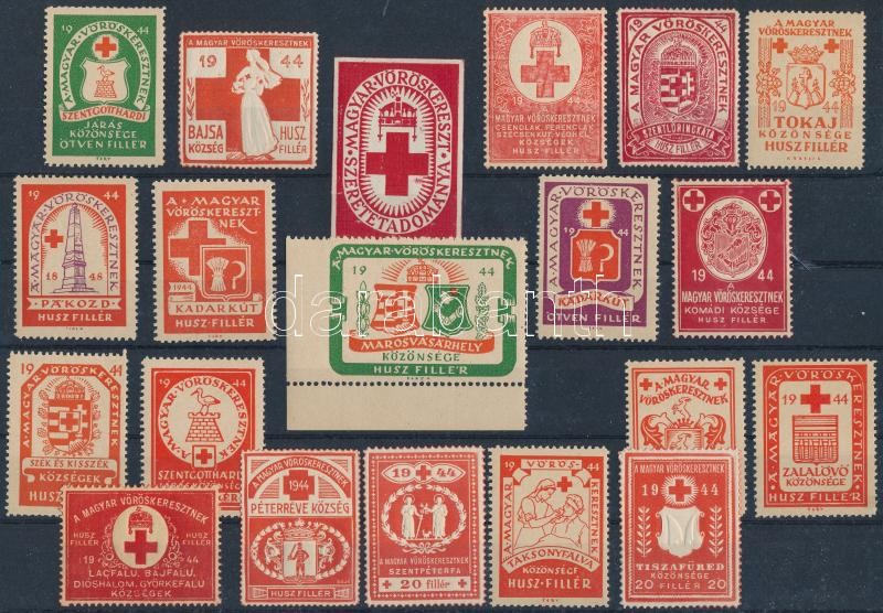 Leírás: 1944 Vöröskereszt Közigazgatási bélyegek 19 klf + 1 db szeretetadomány / Red Cross administrative stamps, 20 piece