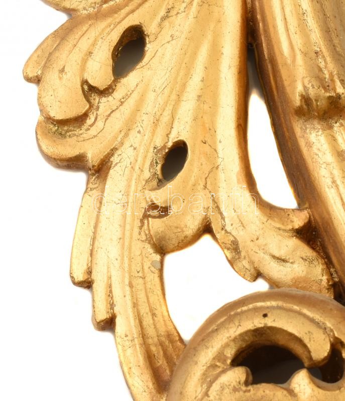 Leírás: Ovális tükör, aranyozott, faragott fa kerettel. Kis kopásokkal. Külső méret 72x59 cm / Oval mirror with hand carved frame 72x59 cm