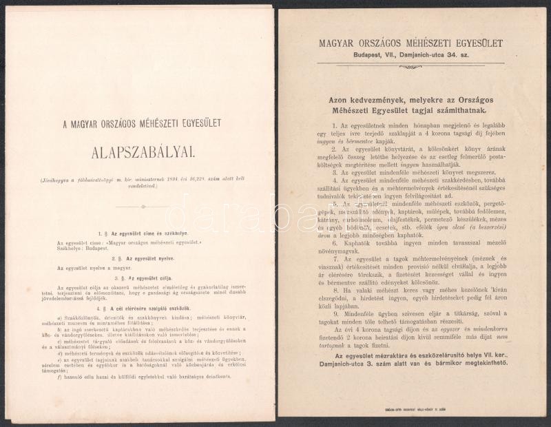 cca 1904 Magyar Országos Méhészeti Egyesület nyomtatványai 3 db: