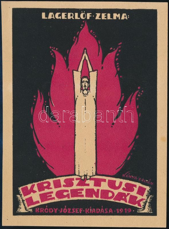 1919 Kónya Zoltán (?-?): Krisztusi legendák könyvborító terv, 18×13 cm https://www.darabanth.com/hu/35-Nagyaukcio/35.1/Mutargy-papirregiseg-egyeb/Reklam~14818/1919-Konya-Zoltan-Krisztusi-legendak-konyvborito-terv-18C39713-cm~II2371797