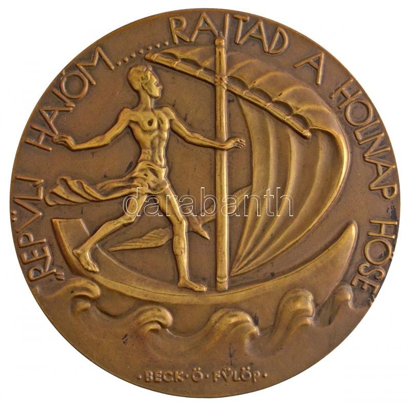Beck Ötvös Fülöp (1873-1945) 1928. "Ady Endre emlékének a 'Nyugat' / 'Repülj hajóm..... Rajtad a holnap hőse'" Br emlékérem (102,04g/65mm) T:1-,2 / Hungary 1928. "The 'Nyugat' for the Memory of Endre Ady" Br commemorative medallion. Sign.: Fülöp Beck Ötvös (102,04g/65mm) C:AU,XF HP 986.