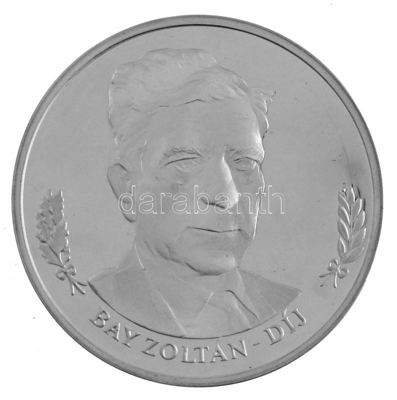 DN "Bay Zoltán-díj / A Környezetvédelmi és Vízügyi Minisztertől" peremen jelzett Ag emlékérem "SZG (Szabó Géza)" gyártói jelzéssel, nem adományozott darab (34,20g/0.925/42,5mm) T:1- (PP) /
