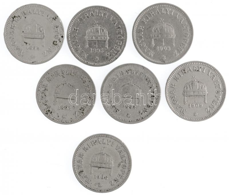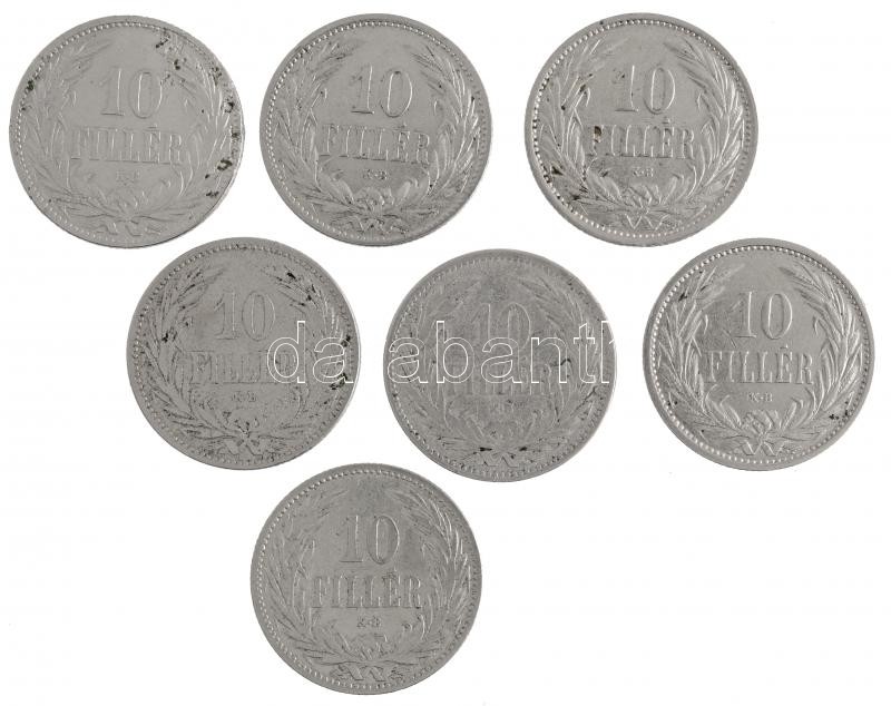 1892-1909. 10f Ni (7xklf) Körmöcbánya, teljes sor, közte az 1906-os, ritka évszámmal! T:2-3 / Hungary 1892-1909. 10 Fillér Ni (7xdiff) Kremnic, full serie, with rare 1906 year! C:XF-F