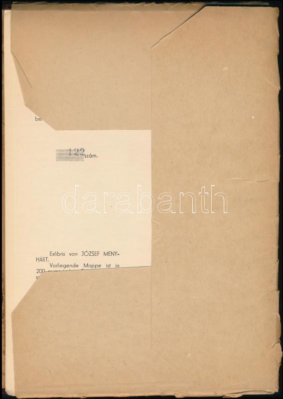 Leírás: Menyhárt Jenő fametszet könyvjegyei. Dr. berei Soó Rezső bevezetésével. Réthy István kiadása. Bp.-Debrecen, (1937), Alpár Sándor-Lehotai Pál-ny., 2 sztl. lev.+36 t. Kiadói kissé kopottas, kissé szakadt félvászon mappában.