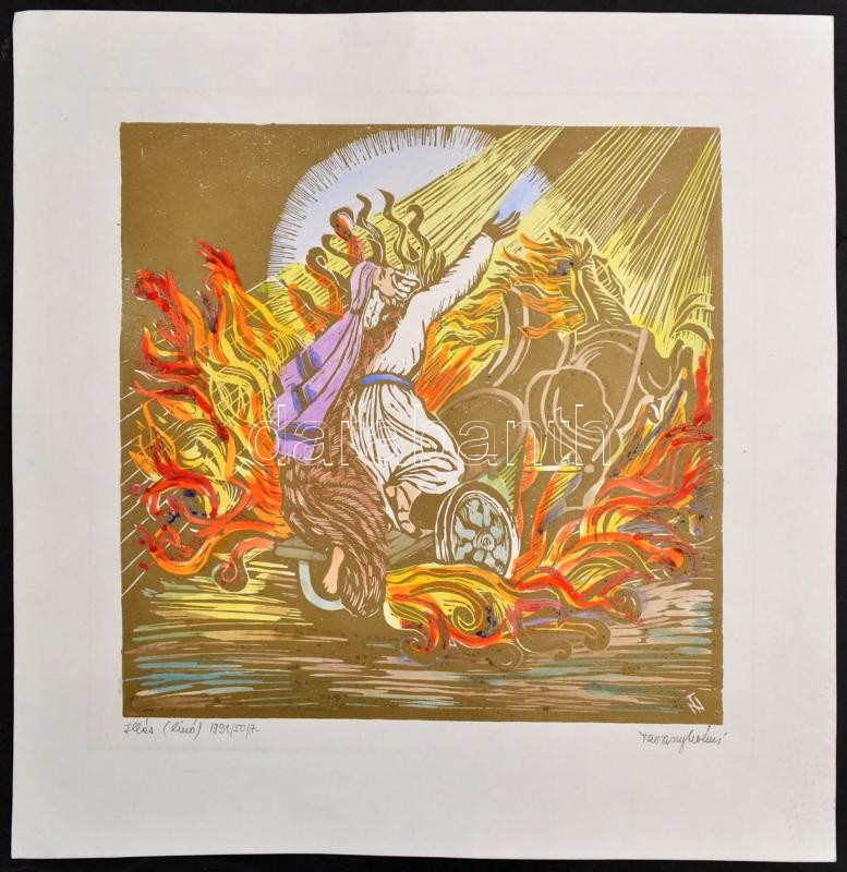 Leírás: Tavaszy Noémi (1927-2018) : 4 linó és 6 db egyedi technikájú alkotása, jelzettek, 15×22-60×40 cm