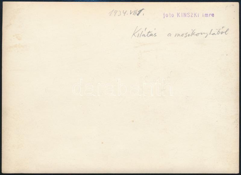 Leírás: 1934 Kinszki Imre (1901-1945) budapesti fotóművész pecséttel jelzett vintage alkotása (Kilátás a mosókonyhából), 13x18 cm
