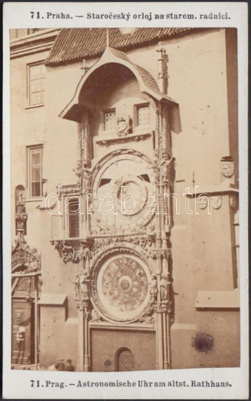 cca 1860 2 db fotó, Prága, csillagászati óra a régi városházánál + a városháza, keményhátú fotó, feliratozva, 6x10 cm /