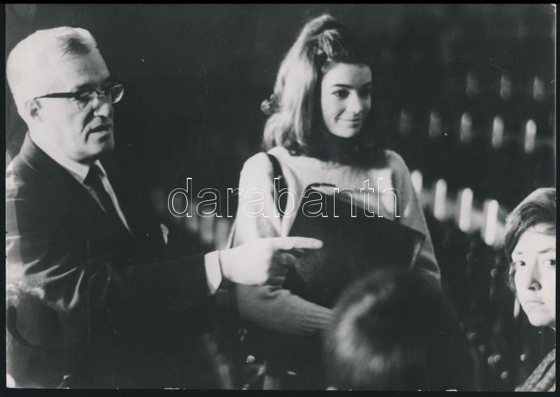 Leírás: cca 1960 Vittorio de Sica és Christine Deroche forgatási fotó / Werk photo 13x18 cm