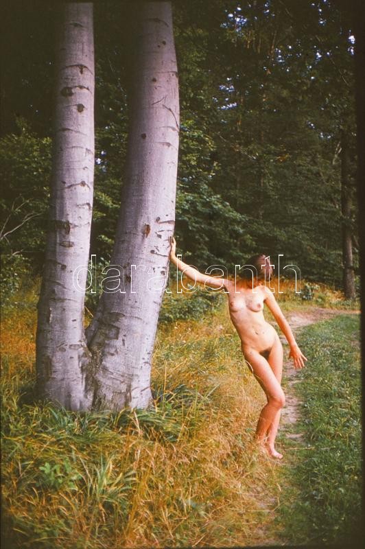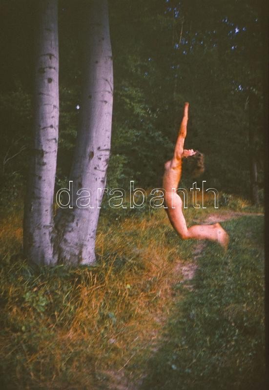 Leírás: cca 1972 Czakó László (?-?) pécsi fotóművész hagyatékából 9 db színes diapozitív felvétel (Kirándulás az erdőbe, akt felvételek), 36x24 mm