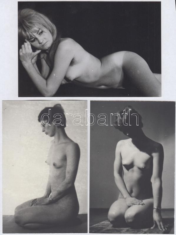 cca 1975 Nyuszika a kalap alatt, szolidan erotikus felvételek, 12 db vintage negatív, + 6 db vintage fotó és/vagy mai nagyítás más régi negatívokról, a pozitív és negatív képek között nincs összefüggés, 24x36 mm és 25x18 cm között