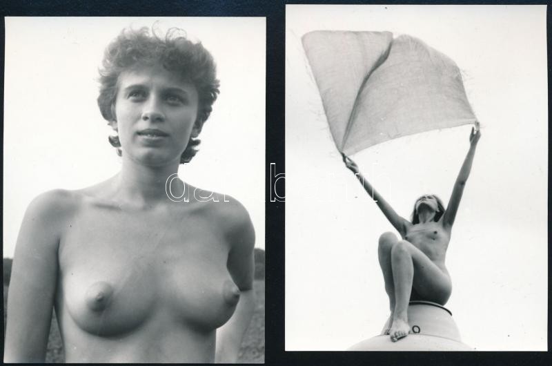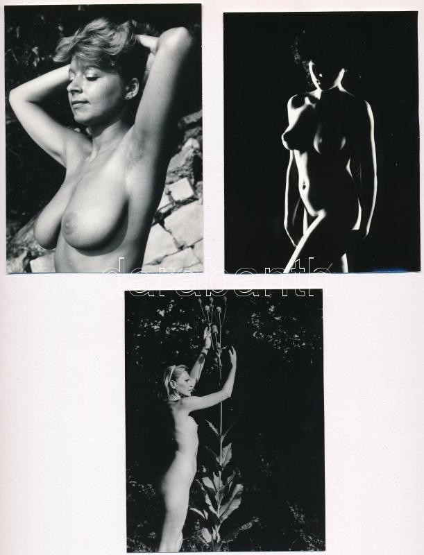cca 1978 Bájkereső, szolidan erotikus felvételek, 4 db vintage negatív (24x36 mm) + 5 db vintage fotó (9x12 cm), (a negatívok és a pozitív képek között nincs összefüggés)