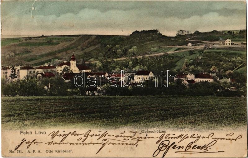 Leírás: Felsőlövő, Oberschützen; látkép. Kiadja Otto Kirnbauer No. 781. / general view (szakadás / tear)