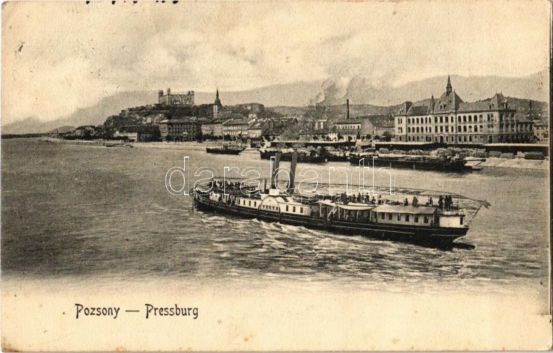 1905 Pozsony, Pressburg, Bratislava; Vár, "Vesta" gyorsgőzös. "Bediene... https://www.darabanth.com/hu/350-Gyorsarveres/350.0/Kepeslapok/Felvidek~2500007/1905-Pozsony-Pressburg-Bratislava-Var-Vesta-gyorsgozos-Bediene-dich-allein-castle-ste~II1992318