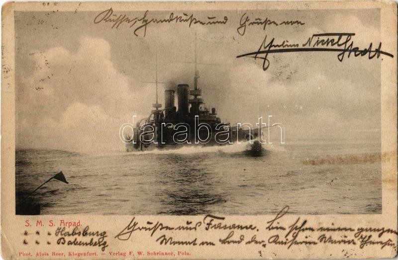 SMS Árpád az Osztrák-Magyar Haditengerészet Habsburg-osztályú csatahaj... https://www.darabanth.com/hu/350-Gyorsarveres/350.0/Kepeslapok/Hadihajo~2500050/SMS-Arpad-az-Osztrak-Magyar-Haditengereszet-Habsburg-osztalyu-csatahajoja-KuK-Kriegsmari~II1993133