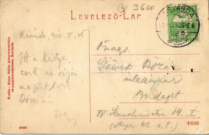 Leírás: 1910 Kisvárda, Szent László utca, Állami elemi iskola. W. L. (?) 2032. Kiadja Klein Gyula (EK)