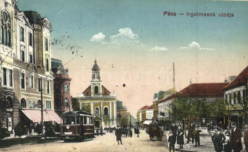 1918 Pécs, Irgalmasok utcája, villamos, üzletek. Kiadja Alt és Böhm (E... https://www.darabanth.com/hu/350-Gyorsarveres/350.0/Kepeslapok/Magyarorszag~2500005/1918-Pecs-Irgalmasok-utcaja-villamos-uzletek-Kiadja-Alt-es-Bohm-EK~II1479759