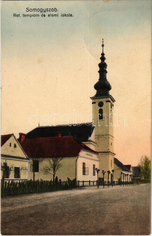 1927 Somogyszob, Református templom és elemi iskola (fl) https://www.darabanth.com/hu/350-Gyorsarveres/350.0/Kepeslapok/Magyarorszag~2500005/1927-Somogyszob-Reformatus-templom-es-elemi-iskola-fl~II1992501