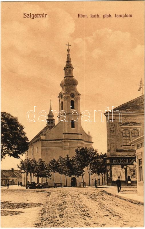 Szigetvár, Római katolikus plébánia templom, Deutsch Dávid és Kobza üz... https://www.darabanth.com/hu/350-Gyorsarveres/350.0/Kepeslapok/Magyarorszag~2500005/Szigetvar-Romai-katolikus-plebania-templom-Deutsch-David-es-Kobza-uzlete-piac-arusok-Koz~II1992265