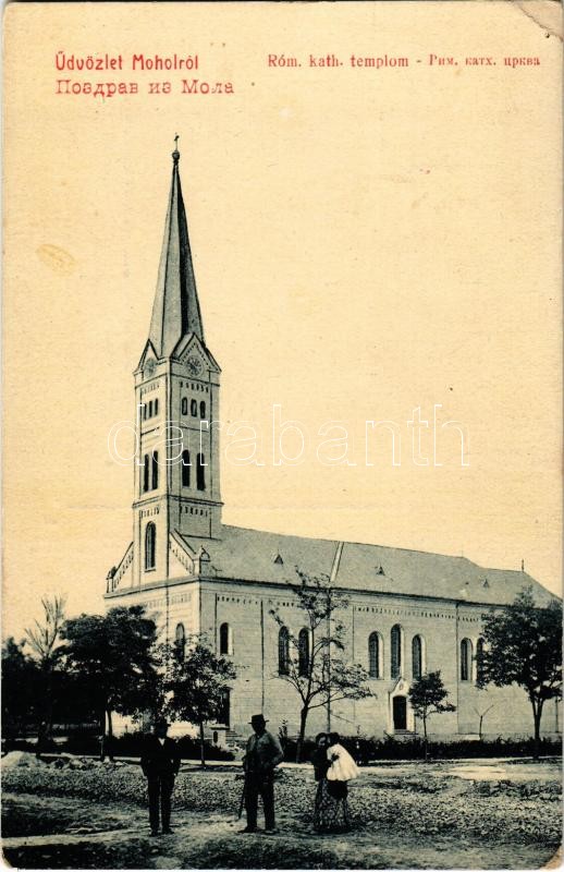 Mohol, Mol; Római katolikus templom. W.L. Bp. 2246. Kiadja Lolin Milos... https://www.darabanth.com/hu/350-Gyorsarveres/350.0/Kepeslapok/Vajdasag~2500010/Mohol-Mol-Romai-katolikus-templom-WL-Bp-2246-Kiadja-Lolin-Milos-church-EK~II1991711