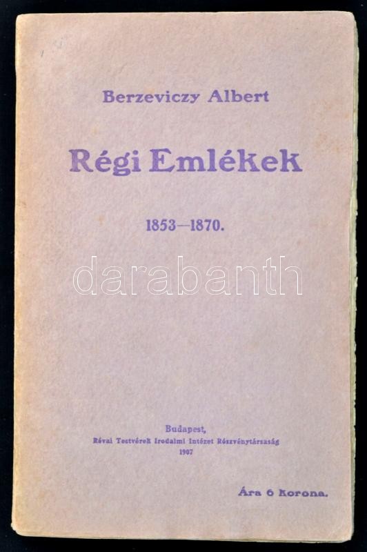 Berzeviczy Albert: Régi emlékek 1853-1870. Bp., 1907, Révai, 314+2 p. ... https://www.darabanth.com/hu/350-Gyorsarveres/350.0/Konyvek/Konyvek-Egyeb-ritkasagok~50/Berzeviczy-Albert-Regi-emlekek-1853-1870-Bp-1907-Revai-314plus2-p-Kiadoi-papirkotesben-a~II1988032