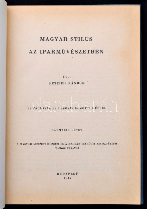 Fettich Nándor: Magyar stílus az iparművészetben. I-III. kötet. Bp.,1943-1944-1947, Vitéz Csaba és Társa-ny., 103+1 p.+XXIV t. (Fekete-fehér fotók.) +76 p.+XLVIII.(Fekete-fehér fotók.)3+3+2+ 67+1 p.+XXVIII t. (Fekete-fehér fotókkal.) Átkötött egészvászon-kötés.